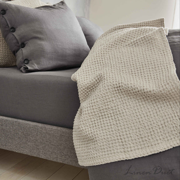 Waffle Linen Throw Blanket in Linen Cotton Blend for Bed or Sofa